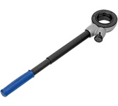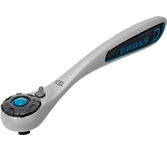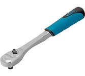 Трещоточный ключ Gross 14136 с присоединительным квадратом 3/8 дюйма предназначен для работ с резьбовыми соединениями. Храповый механизм со 120 зубцами обеспечивает исключительно плавный ход. Инструмент оптимален для работы с труднодоступными крепежами — шаг трещотки составляет всего 3 градуса. Ключ подойдет для ремонта компактной техники, велосипедов, монтажа оборудования, пригодится также дома, в гараже или на даче. Преимущества Ключ изготовлен из высококачественной стали хромованадиевой группы и имеет цельнокованый корпус, что обеспечивает повышенную прочность и износостойкость инструмента. Во время работы насадка надежно удерживается присоединительным квадратом 3/8 дюйма с шариковым фиксатором. Ключ снабжен кнопкой быстрого сброса, позволяющей заменить насадку за несколько секунд. При помощи флажкового переключателя можно моментально изменить направление вращения трещотки. Механизм свободного вращения упрощает работу с крепежными элементами. Рукоятка оригинальной формы обеспечивает комфортность использова