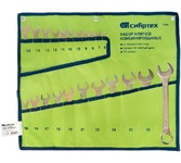 Набор комбинированных ключей Сибртех 15444 размером 6-32 мм, с покрытием «желтый цинк», включает в себя 22 инструмента для монтажа и демонтажа шестигранного резьбового крепежа соответствующего размера. Наличие рожкового и кольцевого зева делает каждый ключ универсальным в применении. Накидные головки с 12-гранным профилем надежно удерживают крепеж, уменьшая риск его деформации. Набор будет полезен в сервисном центре, авторемонтной мастерской, для выполнения монтажных работ. Пригодится также дома и на даче.ПреимуществаПрочность и устойчивость к механическим нагрузкам — ключи изготовлены из кованой углеродистой стали, прошли отжиг, закалку и последующий отпуск.Повышенная износостойкость — рабочие части закалены до твердости 45 HRC.Долговечность — желтое цинковое покрытие надежно защищает инструменты от образования коррозии.Высокая эффективность — накидные головки расположены под углом 15° к плоскости ключей, что позволяет работать с комфортом даже в труднодосту