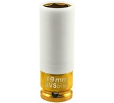 Предназначена для монтажа/демонтажа резьбового крепежа легкосплавных колесных дисков. Прочный пластик на головке защищает полировку диска от повреждений. Размер головки: 19 мм Посадочный размер: 1/2"DR Количество граней: 6 Материал: хромомолибденовая сталь Твердость: 42-46 HRC Покрытие: цветное хромированное
