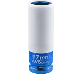 Предназначена для монтажа/демонтажа резьбового крепежа легкосплавных колесных дисков. Прочный пластик на головке защищает полировку диска от повреждений. Размер головки: 17 мм Посадочный размер: 1/2"DR Количество граней: 6 Материал: хромомолибденовая сталь Твердость: 42-46 HRC Покрытие: цветное хромированное