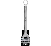 Накидной ключ Сибртех 14626 с покрытием из желтого цинка используется для монтажа и демонтажа резьбового крепежа с шестигранной головкой диаметром 17 и 19 мм. Пригодится для выполнения монтажных работ в гараже, на небольшом производстве и в быту. Кольцевой зев полностью захватывает шляпку крепежного элемента, поэтому ключом легко откручивать даже закисшие болты и гайки. Преимущества Прочность и долговечность — инструмент изготовлен из высококачественной углеродистой стали 45, твердость рабочих частей составляет 42 HRC, что соответствует требованиям ГОСТ (41-46 HRC). Устойчивость к воздействию влаги — желтое цинковое покрытие защищает от образования коррозии. Надежный захват крепежа — 12-гранный профиль каждого кольцевого зева имеет увеличенную площадь соприкосновения с головкой болта или гайки, что минимизирует риск повреждения ее граней. Продуманная конструкция — рабочие части смещены относительно плоскости рукоятки, что делает удобной работу в труднодоступных местах.