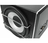 Пиковая мощность: 600 Вт Номинальная мощность: 200 Вт Чувствительность: 86 ±2 дБ Импеданс: 4 Ом (одна катушка) Особенности модели Звуковая катушка: 1,5" (38 мм), 3.7 Ом SPL: 105 ±2 дБ / 100 Вт на расстоянии 1 м Диффузор: Бумажный диффузор Материал подвеса: Резина Магнит: 20 унций Диапазон частот: 35-150 Гц Общие характеристики Тип корпуса: Трапеция Размер сабвуфера: 8" (20 см) Корпус: Фазоинверторный корпус со встроенным усилителем класса АВ Размеры: 206х(203х263)х285 мм