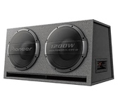 Тип: Сабвуфер в отражающем басы корпусе с двумя динамиками Максимальная входная мощность: 3000 Вт Номинальная мощность: 1000 Вт Частотные характеристики: 20 Гц – 2,9 кГц Чувствительность: 118 дБ (в машине, 2 В) Сопротивление: 0,3 ? Материал НЧ динамика: Целлюлоза Объемный звук: Уретан Тип звуковой катушки: Одновитковая звуковая катушка, 4 слоя медной круглой проволоки Тип каркаса звуковой катушки: Каптон Разъемы: Фастон Магниты: Феррит ФНЧ: 50 Гц – 200 Гц (–12 дБ/oct) Вес: 22,8 кг Размеры: 745x459(375)x400 мм Активный сабвуфер: 30 см х 2 (12")
