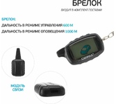 Наличие канала двусторонней связи. Наличие встроенного многозонного пейджера. Постановка и снятие с охраны разными кнопками брелока. Радиус действия канала управления в городской застройке / вне города 600 м. Двухуровневый датчик удара в компл