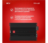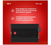Количество каналов: Четырехканальный; Класс: AB; Максимальная мощность, Вт: 800; Номинальная мощность при 2 Ом: 100 Вт x 4; Номинальная мощность при 4 Ом: 60 Вт x 4; Диапазон частот: 10 Гц - 45 кГц; LPF (фильтр низких частот): 32 Гц - 3 кГц; Номинальная мощность в мостовом режиме: 2х200; Размер: 280 х 200 х 56 мм Самый популярный усилитель из всех представленных новинок. Четыре канала по 60 ватт раскачают любую компонентную акустику начального уровня, а возможность отдать 240 ватт в мостовом режиме позволит подключить к нему простенький сабвуфер. Усилитель оснащен встроенным фильтром низких частот для регулировки уровня басов, а также включает в себя защиту от перегрева и короткого замыкания для обеспечения безопасной эксплуатации.; ; Предназначен для использования в автомобильных аудиосистемах и обеспечивает высококачественное, мощное звучание. Кроссовер устроен так, чтобы усилитель мог работать с любыми магнитолами и самое главное решать вопросы по канального подключения компонентов.