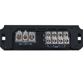 Номинальная мощность 4 Ом: СТЕРЕО 350Вт х 4, MOHO в мостовом включении: 1000Вт х 2 Номинальная мощность 2 Ом: СТЕРЕО 500Вт х 4 Чувствительность: 200мВ – 8В Отношение сигнал/шум: >91 дБ Коэффициент гармонических искажений: (THD) @ 1 кГц (4 Ом) 0,05% Особенности модели Класс усилителя: D Стабильная работа на нагрузке: 2 и 4 Ом Bass Boost: 0~12дБ Диапазон частот: 10 Гц ~ 50 кГц Общие характеристики Размеры: 314x145x52 мм Питание Рабочее напряжение: 10-15В пост. ток Разделение каналов Разделение каналов: >60 дБ Low pass фильтр: 10Гц ~ 8кГц High pass фильтр: 10Гц ~ 8кГц Число каналов: 4/3/2