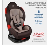 Детское автокресло SIGER «Диона» подходит для детей весом до 25 кг в возрасте от рождения до 7 лет. Благодаря особой анатомической форме сидения и системе наклона кресла, ребенок находится в оптимальном для возраста положении во время поездки, что гарантирует правильное развитие опорно-двигательного аппарата. Особая форма подголовника и увеличенная боковая поддержка обеспечивают защиту ребенка в случае бокового удара. Мягкий подголовник, вкладыш, специальная ортопедическая спинка и накладки внутренних ремней повышают уровень комфорта во время поездки. Четыре позиции регулировки внутренних ремней по высоте позволяют адаптировать кресло под рост ребенка. Чехол изготовлен из качественного износостойкого и гипоаллергенного материала. Характеристики: Тип: автокресло Цвет: серый Группа: 0/1/2 (до 25 кг) Вес ребенка: до 25 кг Возраст: 0 месяцев - 7 лет Крепление: автомобильный ремень Внутренние ремни: пятиточечные Регулировка ремней: есть Способ установки: спиной или лицом вперед Особенности установки: фиксатор натя