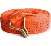 Выдерживает нагрузку на прямое стяжное усилие – 2 тонну и стяжное усилие при обхвате – 4 тонны. Характеристики • Храповый стяжной механизм из стали с ручкой типа «Эконом» (ручка полностью стальная, не имеет вставок). • Высокопрочная лента из полипропилена 50 мм. Имеет прочные швы. Отличается морозостойкостью и устойчивостью к агрессивным средам. Длина ленты составляет 6 метров. • J – образные стальные крюки.
