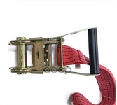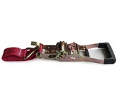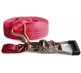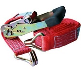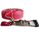 Выдерживают нагрузку на прямое стяжное усилие – 2 тонны и стяжное усилие при обхвате – 4 тонны. Характеристики • Храповый стяжной механизм из стали с ручкой типа «Стандарт» (ручка имеет пластиковую ребристую вставку в районе удерживания в ладони для комфортного использования в любых, в том числе, зимних условиях). • Высокопрочная лента из полипропилена 50 мм. Имеет прочные швы. Отличается морозостойкостью и устойчивостью к агрессивным средам. Длина ленты 6 метров. • J – образные стальные крюки.