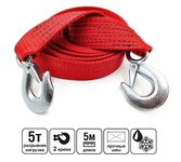 Трос буксировочный с предназначен для буксировки автомобилей и других транспортных средств. Максимальная масса буксируемого автомобиля: 5 т Длина: 5 м (в соответствии с п. 20.3 ПДД) Изготовлен из высокопрочного полиэстера Отличается износостойкостью, морозоустойчивостью и стойкостью к агрессивным средам На протяжении всего срока службы не меняет свои линейные размеры ПРАВИЛА ЭКСПЛУАТАЦИИ: Движение во время буксировки должно быть плавным, без резких рывков и торможений. Не является рывковым тросом! Следить, чтобы провисший трос не намотался на колеса. Не применять для подъёма. Максимальная масса авто: 5 т Комплектация: Крюк буксировочный – 2 шт.; Трос буксировочный Длина: 5 м Ширина ленты: 50 мм Состав: Крюк буксировочный: сталь. Материал ленты: полиэстер.