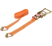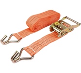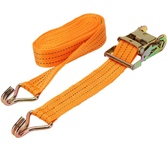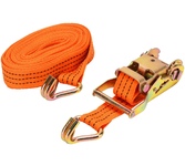 Выдерживает нагрузку на прямое стяжное усилие – 2 тонну и стяжное усилие при обхвате – 4 тонны. Характеристики • Храповый стяжной механизм из стали с ручкой типа «Эконом» (ручка полностью стальная, не имеет вставок). • Высокопрочная лента из полипропилена 50 мм. Имеет прочные швы. Отличается морозостойкостью и устойчивостью к агрессивным средам. Длина ленты составляет 6 метров. • J – образные стальные крюки.