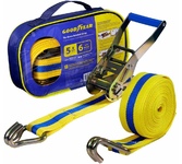 Буксировочный трос Goodyear предназначен для буксировки автомобиля общей массой до 7 тонн. Незаменим в условиях бездорожья и в аварийных ситуациях. Трос с усиленными концами изготовлен из сверхпрочной полипропиленовой нити, которая обеспечивает прочность и устойчивость ленты троса к влаге, воздействию нефтепродуктов и других химических соединений. Стальные шаклы обеспечивают надежную сцепку. Трос имеет оптимальную длину – 5 метров. Это позволяет производить буксировку на безопасном расстоянии, не теряя контроль над автомобилем «на прицепе». В комплекте есть сумка для удобного хранения и перевозки троса. Особенности: • Сверхпрочная полипропиленовая нить • Усиленные края троса • Длина 5 метров • Устойчивость к воздействию влаги, нефтепродуктов • Морозоустойчивость Комплектация: • Трос – 1 шт • Шаклы – 2 шт • Сумка – 1 шт