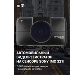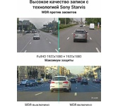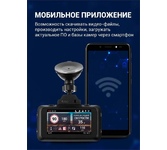 Процессор: NovatekNT96663, 1GBDDRIII. Видеосенсор: SonyEXMORIMX323, 2.1MP, 1/2.8" CMOS. Объектив фронтальной камеры: 155° (6 стеклянных линз, ИК-фильтр), F/1.8. Объектив салонной камеры: 110° (6 стеклянных линз, ИК-фильтр), F/2.7 + ИК подстветка (4 шт.), наклон 60°. Разрешение видео: 2 х FHD 1080p (1920х1080) при 30 к/с, FHD 1080p + HD 720p (1920x720) @ при 30 к/с. Видео кодек: Н.264 (MOV). Цикличная запись: 1 / 3 / 5 / 10 минут. WDR (WideDynamicRange). Штамп на видео: Дата/время/гос.номер/скорость/координаты. Запись звука: Встроенный микрофон. Дисплей: TFT-LCD 1.5" (4: 3) с функцией автоотключения/заставки. GPS модуль: Встроенный (скорость/координаты). Функция "Антисон": Есть, 1/2/4 часа. Контроль фар. Поддержка карт: MicroSD/SDHC/SDXC до 128 ГБ (не ниже class 10 U1/U3). G-сенсор: Встроенный 3-осевой гиродатчик. Парковочный режим: Детектор движения / G-сенсор / TimeLapse 1 к/с. Крепление: Быстросъемное на 3М скотче, поворотное. Аккумулятор: Ионистор (суперконденсатор), 2х5F. Питание: MicroUSB