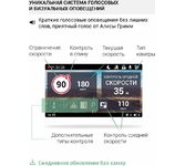 Передовые технологии сигнатурного распознавания сигналов радарных комплексов Обновление баз камер и прошивки с помощью приложения на смартфоне Определение и сообщение о типе радарного сигнала ИСКРА/КОРДОН / РОБОТ/ КРЕЧЕТ/СТРЕЛКА и др Защита от сигналов CAS (Collision Avoidance System) с датчиков систем предупреждения столкновений Встроенный GPS модуль с высокой точностью определения координат База радаров и камер по всей России и странам СНГ Детектирование всех комплексов замера скорости радарной частью устройства и по базе GPS Информирование о проезде участков контролируемых комплексами «Автодория» Голосовые сообщения о важных событиях и режиме работы устройства Новый цифровой процессор обработки сигналов DSP высококонтрастный LCD дисплей Обновление прошивки и баз данных с сайта производителя Добавление пользовательских точек Отключение частотных диапазонов (Х,К) по выбору пользователя Поддержка microSD от 8 до 64 гб., класс не ниже 10 U3 Процессор – MStar Датчик изображения 1/3 дюйм, Sony 307 1920х1080пикс.