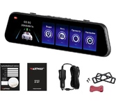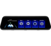 регистратор в виде зеркала с 2 камерами • запись видео 1920x1080 при 25 к/с • угол обзора 120° • с экраном 4.3" • датчик удара (G-сенсор) • работа от аккумулятора • поддержка карт памяти microSD (microSDHC) • встроенный микрофон • подключение внешних камер