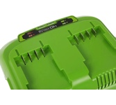 Тип заряжаемого аккумулятора Li-Ion напряжение заряда - 40 В Функция быстрой зарядки ДА Индикатор уровня заряда ДА Время заряда Среднее время зарядки аккумуляторов - 2 А/ч = 30 минут, 4 А/ч = 60 минут, 6 А/ч = 90 минут Крепление на стену ДА Назначение Совместимость со всеми устройствами из линейки Greenworks 40V G-MAX Вес 500 грамм Габариты упаковки (ед) ДхШхВ 0.22x0.16x0.1 м Вес упаковки (ед) 0.7 кг