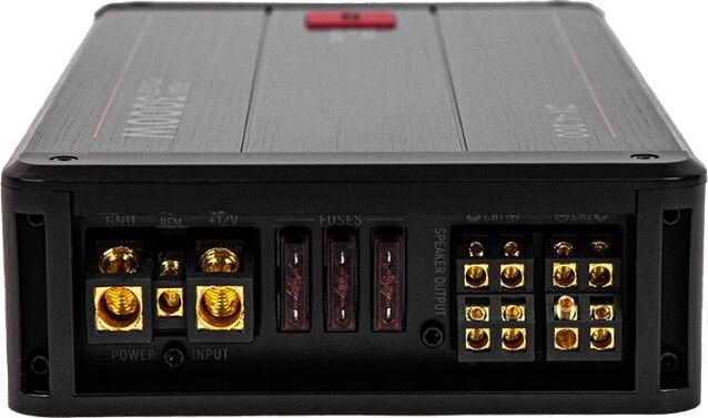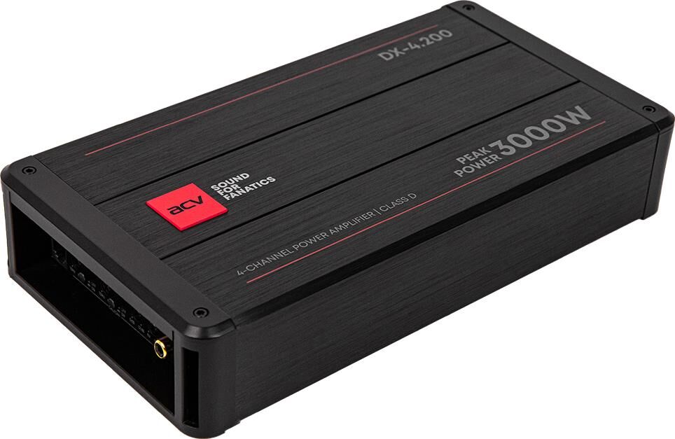 Цифровой усилитель (класс D) Ультракомпактный размер корпуса Стабильная работа на нагрузке 4Ом и 2Ом Новейшая высокоэффективная схемотехника Двухслойная печатная плата FR-4 Многоуровневая система защиты Технология поверхностного монтажа SMD Выносной бас буст (V2, V3) Расширенные фильтры до 8кГц с режимом спаренной работы (бандпас) (V2, V3) Наличие высокоуровневых входов (V1, V3) ХАРАКТЕРИСТИКИ Особенности модели Стабильная работа на нагрузках: 2 и 4 Ом Bass Boost: 0-6-12 дБ Номинал предохранителя: 3 х 30 А Диапазон частот: 10 Гц ~ 30 кГц Воспроизведение звука Пиковая мощность: 3000 Вт Номинальная мощность 4 Ом: СТЕРЕО 200Вт х 4, MOHO в мостовом включении: 750Вт х 2 Номинальная мощность 2 Ом: СТЕРЕО 350Вт х 4 Чувствительность: 200 мВ Отношение сигнал/шум: >91 дБ Коэффициент гармонических искажений: (THD) @ 1 кГц (4 Ом) 0,07% Разделение каналов Разделение каналов: >45 дБ Low pass фильтр: 10 Гц ~ 8 кГц High pass фильтр: 10 Гц ~ 8 кГц Число каналов: 4/3/2 Общие характеристики Размеры: 145 x 52 x 274 мм