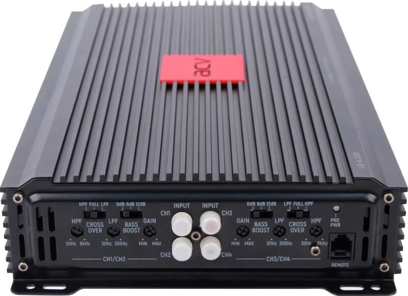 Bass Boost 0-6-12 дБ Артикул LX-4.130 Взвешенное отношение сигнал/шум ? 92 дБ Входная чувствительность 200 мВ - 8 В Гарантия (мес.) 12 Диапазон частот 10 Гц - 30 кГц Класс AB Количество каналов 4 Коэффициент гармонических искажений (THD) @ 1 кГц (4 Ом): 0,15% Номинал предохранителя 3 х 30 А Номинальная выходная мощность при 2 Ом СТЕРЕО: 200 Вт х 4 Номинальная выходная мощность при 4 Ом СТЕРЕО: 130 Вт х 4, МОНО в мостовом включении: 400 Вт х 2 Пиковая мощность, Вт 1800 Питание, В 24V Производитель ACV Разделение каналов >45 дБ Размеры 200х58х332 мм Стабильная работа на нагрузках 2 и 4 Ом Фильтр высоких частот (High Pass) 30-8 кГц Фильтр низких частот (Low Pass) 30-300 Гц Цвет Чёрный