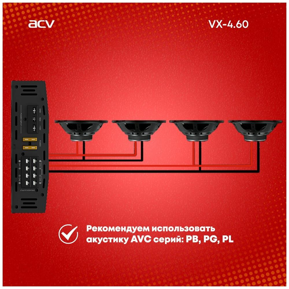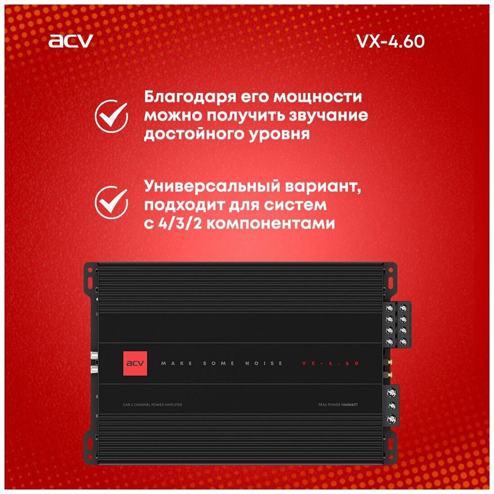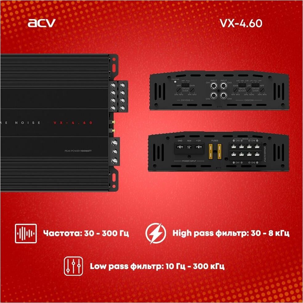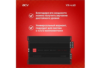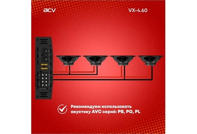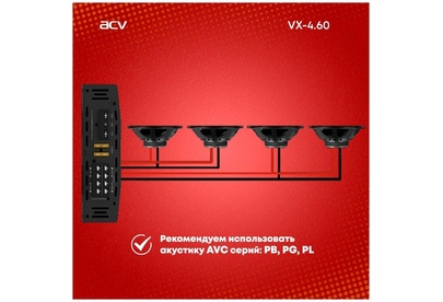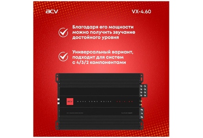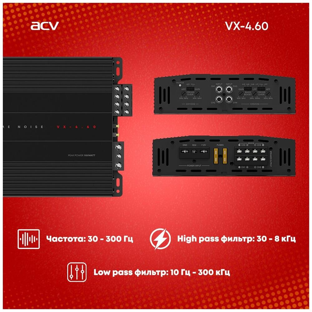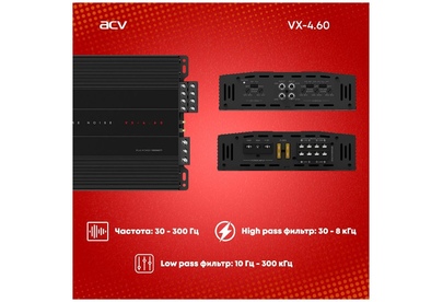 Автоусилитель ACV VX-4.60 4*60Вт/4-3-2 канал/4-2 Ом/High-pass/Low-pass