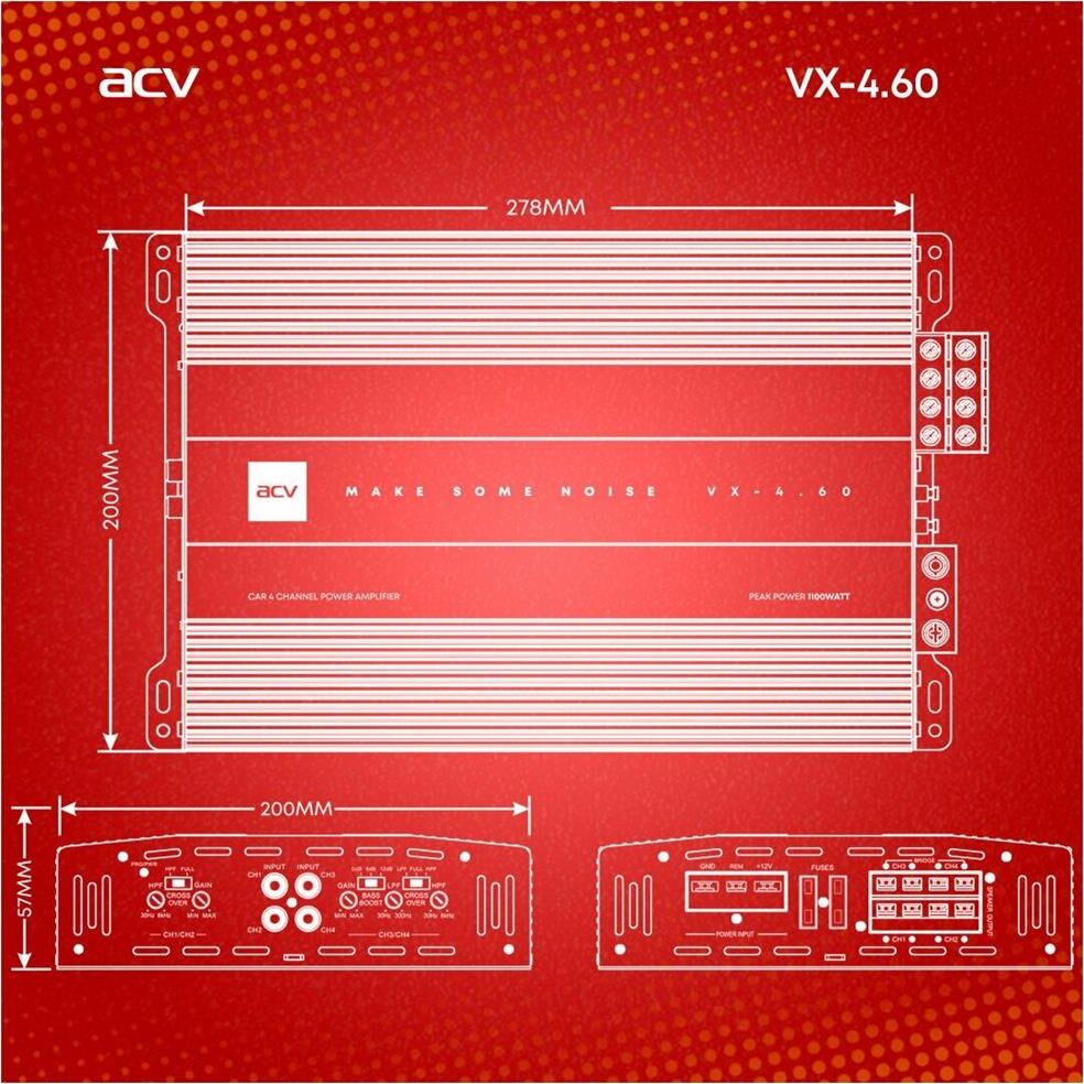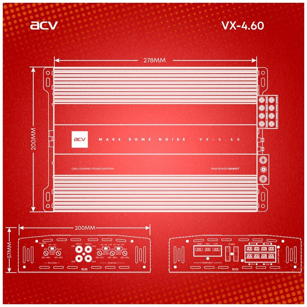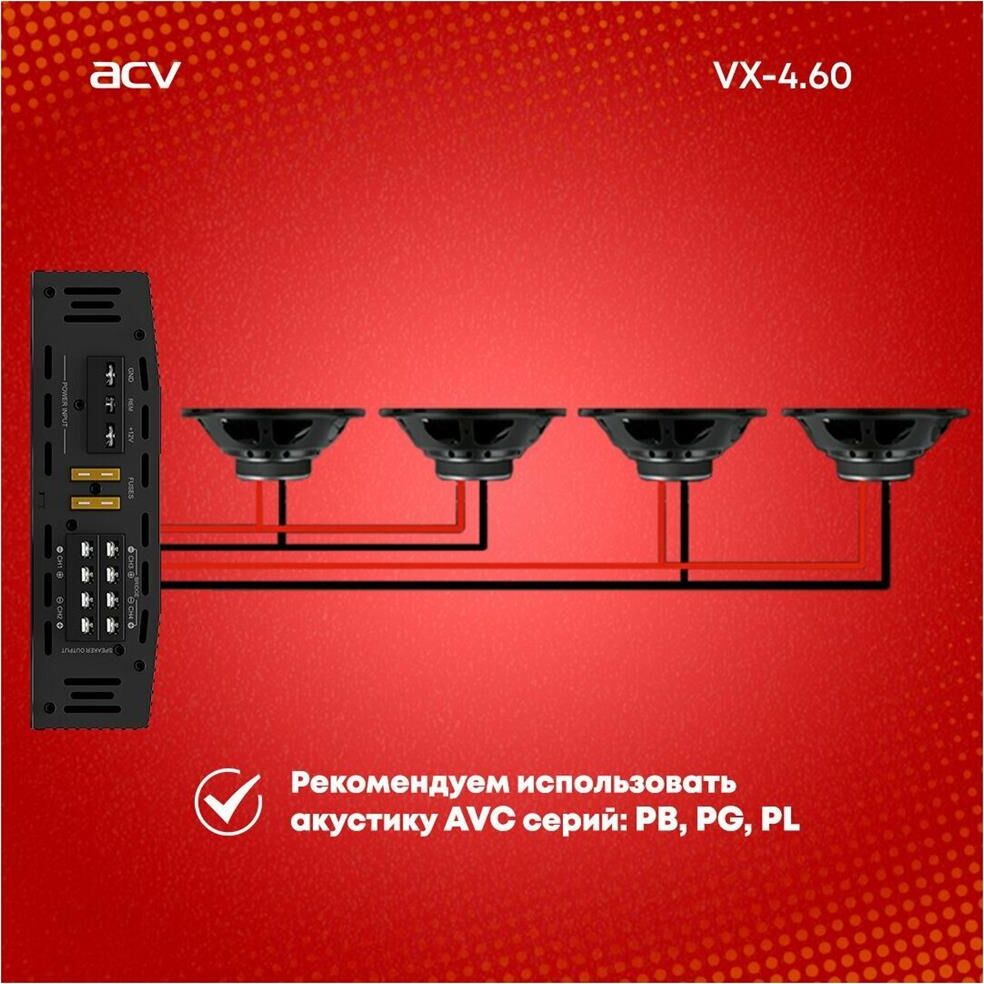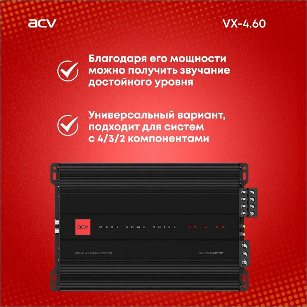 Автоусилитель ACV VX-4.60 4*60Вт/4-3-2 канал/4-2 Ом/High-pass/Low-pass