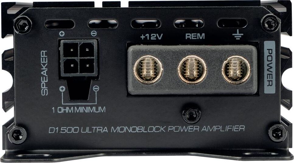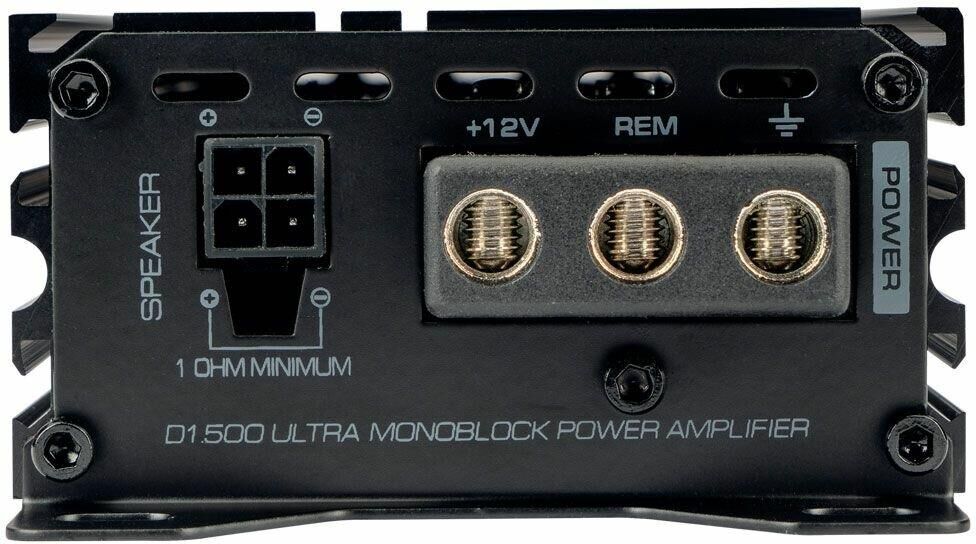 1-канальный усилитель мощности Ультра-компактный дизайн Класс D Номинальная мощность 4? (RMS): 1?220 ватт Номинальная мощность 2? (RMS): 1?350 ватт Номинальная мощность 1? (RMS): 1?500 ватт Диапазон воспроизводимых частот: 10-220Hz LPF (ФНЧ): 60-220Hz Соотношение сигнал/шум: >100dB Коэффициент нелинейных искажений: 0.05% Входная чувствительность: 10-0.2 вольта Hi-Level input (высокоуровневый вход) — прямое подключение, без конвертеров. Рабочее напряжение: 9-16 вольт Габариты: 146 x 78 x 40 mm