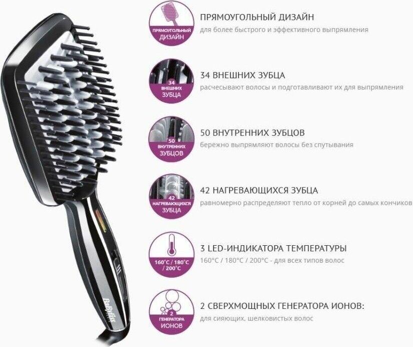 BABYLISS Расческа-выпрямитель HSB101E черный макс.темп.:200С