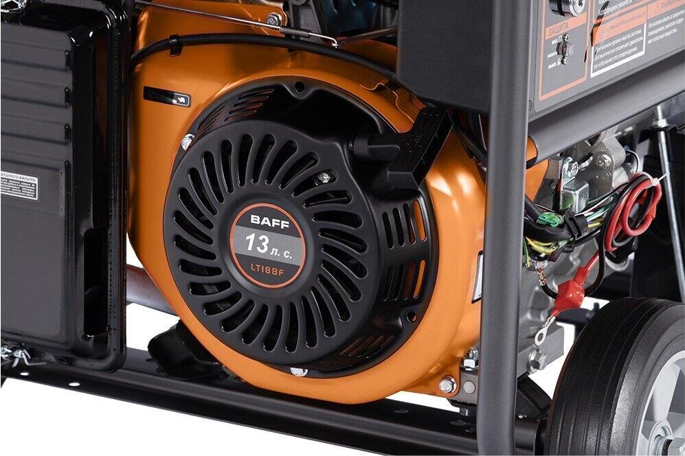Модель двигателя LT188F. Тип двигателя Одноцилиндровый, четырехтактный, с воздушным охлаждением, верхнеклапанный. Объем двигателя, (куб. см.) 389. Максимальная мощность л.с 13. Система зажигания Ручной запуск. Объем топливного бака, л 25. Время непрерывной работы (ч) 10. Мин. расход топлива, г/кВт*ч 360. Уровень шума, дБ 74. Объем масляного картера, л 1.1. Генератор Частота переменного тока, Гц 50. Напряжение переменного тока, В 220. Номинальная мощность , кВт 5. Максимальная мощность, кВт 5.5. Генераторная установка Длина, мм 800. Ширина, мм 530. Высота, мм 507. Вес нетто/брутто, кг 82/85.
