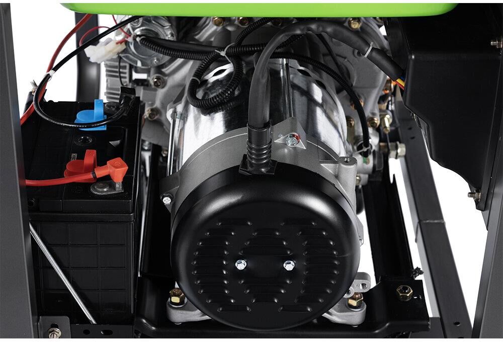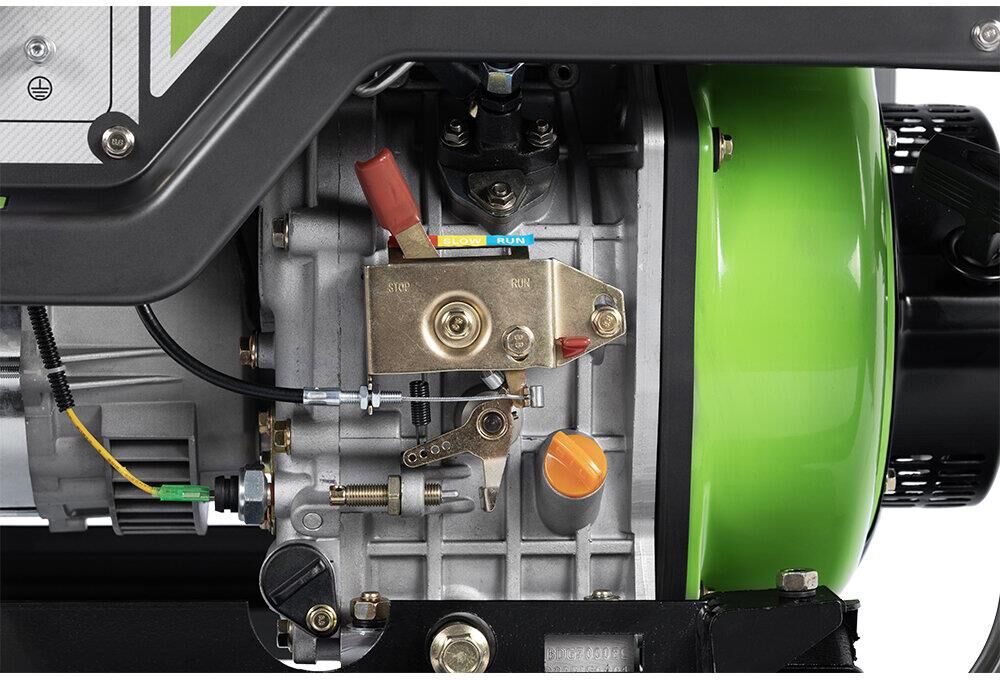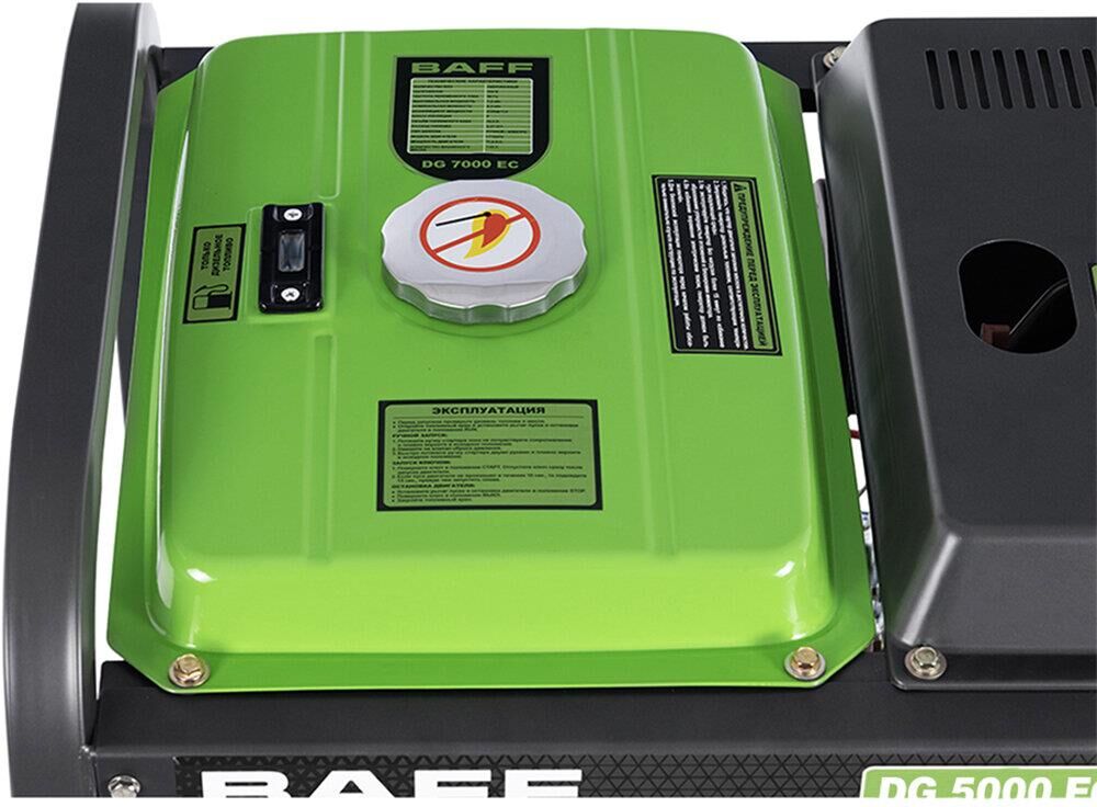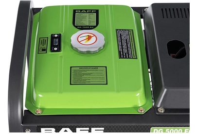 Дизельный генератор BAFF DG 5000 EC с объемом топливного бака 12,5 литров и максимальной мощностью 5 кВт беспрерывно работает до 7,5 часов. Двигатель генератора одноцилиндровый, четырехтактный с прямым впрыском. Благодаря системе воздушного охлаждения происходит качественная вентиляция внутренних узлов, поэтому двигатель устойчив к перегреву, а также предотвращает появление неполадок и увеличивает срок службы генератора.
