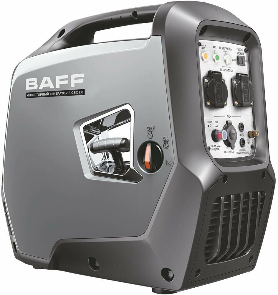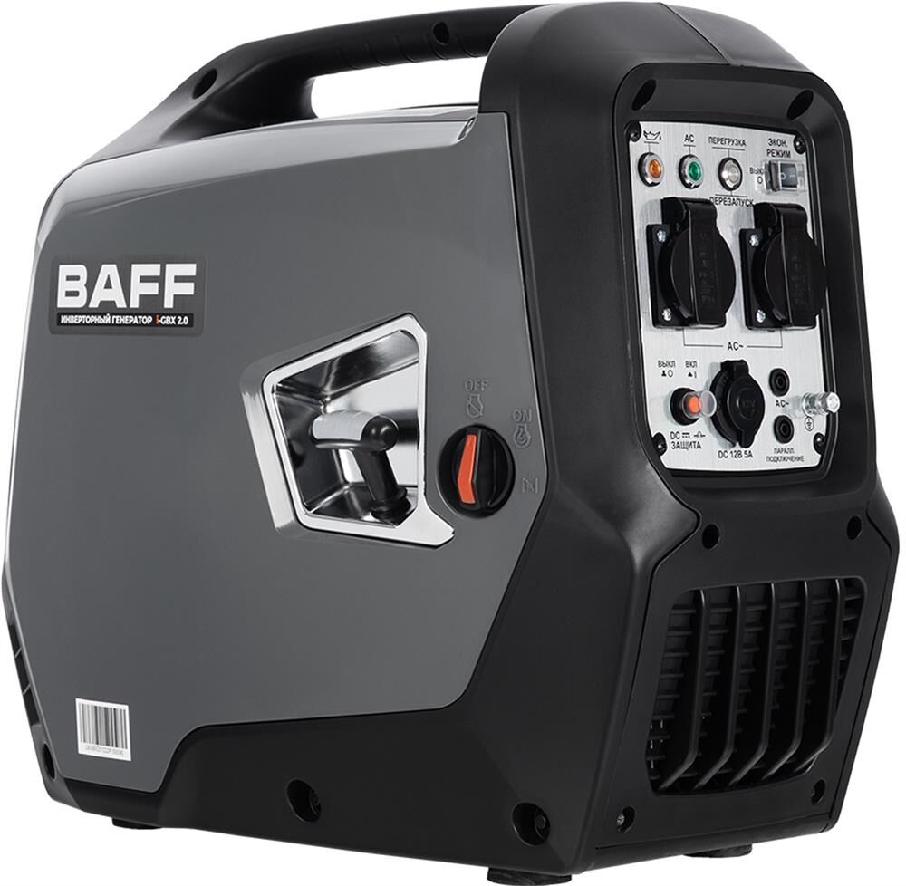 Компактный инверторный генератор BAFF i-GBX 2.0 с объемом топливного бака 4 литров и максимальной мощностью 2 кВА беспрерывно работает до 4 часов. Он характеризуется экономичным расходом топлива, высоким ресурсом работы с небольшим уровнем шума. Одноцилиндровый четырехтактный двигатель устойчив к перегреву, благодаря эффективной воздушной системе охлаждения. Двигатель запускается ручным способом. Во время работы вольтметр отображает текущие показателя напряжения.