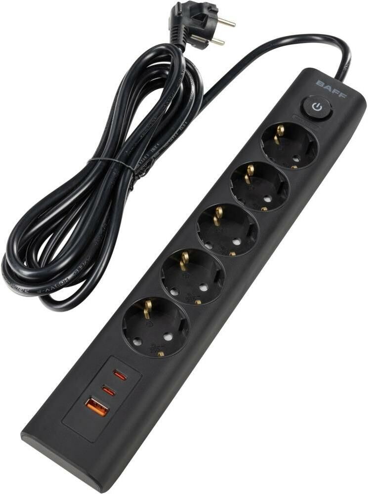 Сетевой фильтр BAFF 533 предназначен для защиты бытовой техники от скачков напряжения в электросети. Это идеальное решение для подключения всех видов бытовой и офисной техники к электрической сети, которое также удобно использовать для зарядки устройств, что делает его идеальным решением для современных пользователей. Устройство оснащено пятью евророзетками переменного тока, которые позволяют одновременно подключить несколько приборов.