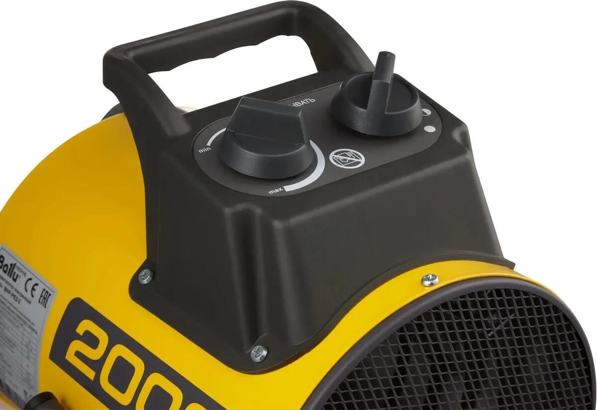 Тип тепловой пушки электрическая Потребляемая электрическая мощность 1-2 кВт Ступени мощности 30/1000/2000 Вт Производительность 260 м3/час Нагревательный элемент ТЭН Термостат есть Площадь обогрева (макс) 20 м2 Топливо Время работы (от полного топливного бака) 24 ч Характеристики электропитания Напряжение электросети 220 В Потребляемый ток 8.9 A Безопасность Защита от перегрева есть Конструкция Ручка для транспортировки есть Форма корпуса круглая Возможность регулировки угла наклона есть Особенности Режим вентиляции без нагрева есть Особенности Тепловая пушка Ballu BHP-PE2-2 обогреет теплицу, гараж, подсобное помещение и жилую площадь 20 м2. ТЭН из нержавеющей стали, двойной цилиндрический корпус из оцинкованной стали c универсальной ручкой-подставкой - эффективно направят воздушный поток, обеспечат безопасность. 3 режима работы. Корпус Материал корпуса сталь Степень защиты корпуса IP20 Степень электрозащиты I класс Цвет желтый/черный Размеры (ШхВхГ) 240 х 310 х 240 мм Вес товара 2.7