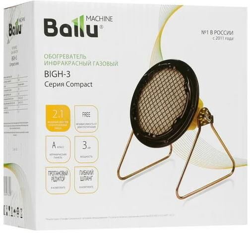 Тип для помещений Вид инфракрасный Рекомендуемая площадь 30 м² Тепловая мощность 3 кВт Max расход сжиж. газа 0.2 кг/ч Топливо пропан/бутан Высота 215 мм Способ подключения шланг + редуктор (в комплекте) Объем баллона 50 л Подключение к баллону 8 мм Вентилятор нет Пьезоподжиг нет Габариты без упаковки 225х215х221 мм Возможность подключения к магистральному газу нет Портативный да Вес нетто 2.2 кг Атмосферный анализатор нет Защита от опрокидывания нет Защита от перегрева да Защита от потухшего пламени нет