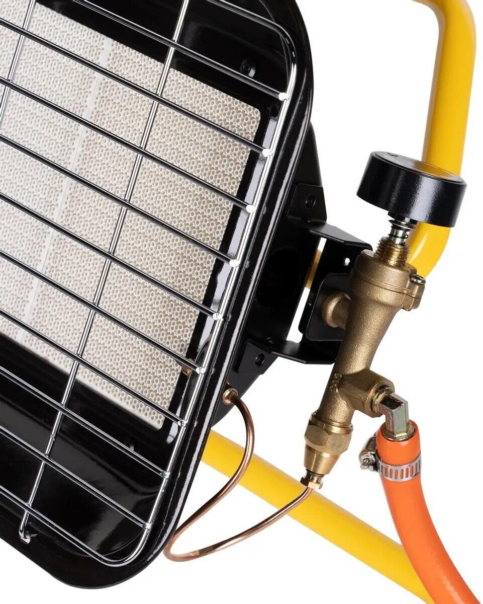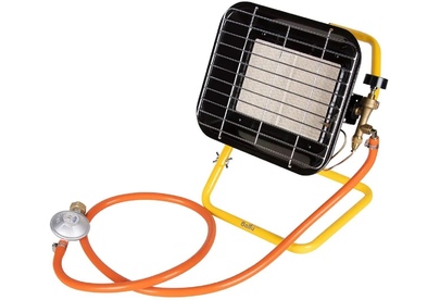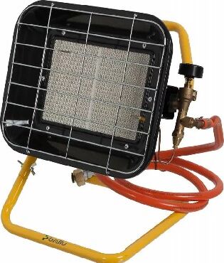 Газовый инфракрасный, мощность 3,0-4,5 кВт, расход газа 207/327 г/час, пропан, ручной поджиг, площадь 20-60 м2, размер 338х278х372 мм, вес 2,3 кг, шланг 1,5м+редуктор в комплекте. Срок службы 5 лет.