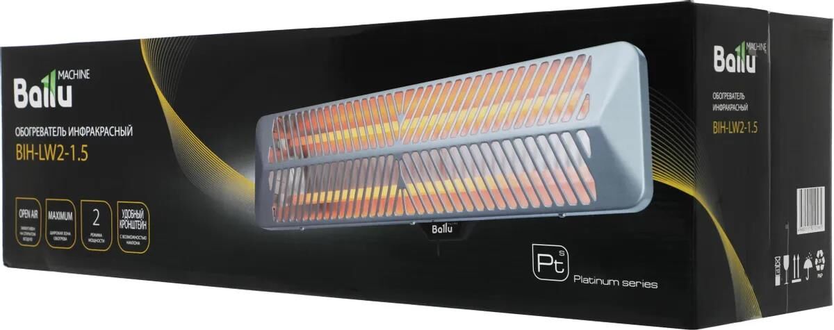 Максимальная мощность 1500 Вт Режимы мощности 1500/750 Вт Количество режимов мощности 2 Площадь обогрева до 25 кв.м Варианты установки настенный Минимальная высота установки 1.8 м Напряжение питания 220 В Минимальное расстояние при длительном нахождении в зоне обогрева 0.7 м Регулировка мощности есть Тип управления механическое Тип нагревательного элемента кварцевый Особенности Особенности Шнур управления для переключения режимов работы. Инфракрасный спект коротковолновый Безопасность Класс электрозащиты I класс Класс защищенности обогревателя IP24 Защитная решетка есть Корпус Материал корпуса сталь Длина сетевого шнура 1.4 м Цвет серый Размеры (ШхВхГ) 55.5 х 13.5 х 12 см Вес товара 1.6 кг Габариты упаковки (ед) ДхШхВ 0.593x0.16x0.17 м Вес упаковки (ед) 2.12 кг Тип подключения к сети сетевая вилка