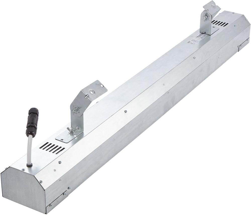 Инфракрасный обогреватель BIH-T2-1.5 – это сфокусированный интенсивный обогрев, IP54, ТЭНы с оболочкой из спецсплава Incoloy для долговременной эксплуатации в тяжёлых условиях (мороз, ветер). Поворотные кронштейны для потолка или стены, герметичный коммутационный блок. Высота установки – 2,5–3,5 м.