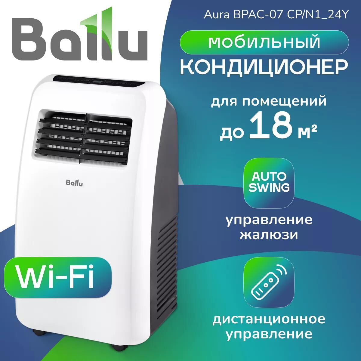 Приборы серии AURA эффективно охлаждают воздух в помещениях до 35 квадратных метров. Легкие и мобильные приборы обладают оптимальным набором опций: ночной режим работы, 24-часовой таймер и возможность выбора скорости воздушного потока. Серия представлена двумя моделями в различном дизайн-исполнении и имеет расширенный температурный диапазон охлаждения от 16 до 30 С. Серия Aura это продвинутые мобильные кондиционеры с расширенным функционалом. Модель BPAC-07 CP/N124Y мощностью 2,05 кВт предназначена для охлаждения помещений площадью до 18м2. Функция управления по Wi-Fi позволяет контролировать работу прибора с помощью вашего смартфона, где бы вы ни находились. А две возможные скорости вентилятора, 24-часовой таймер, ночной режим, информативный ЖК-дисплей и эргономичный пульт - все это делает управление прибором максимально удобным. Автоматическое распределение потока Управляйте прибором из любой точки мира с помощью смартфона.