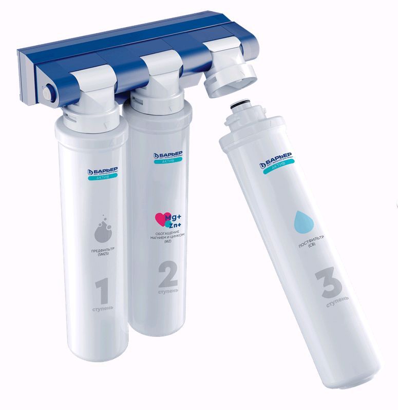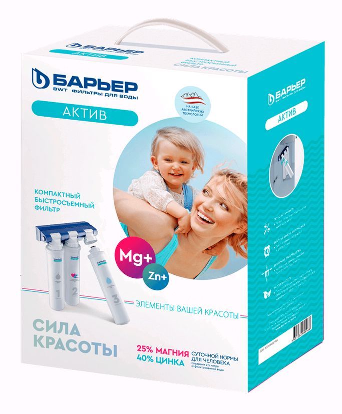 Фильтр нового поколения Барьер Актив Сила красоты разработан на базе уникальных австрийских технологий обогащения воды полезными минералами. Трехступенчатый и в тоже время компактный фильтр, эффективно очищает воду от хлора, органических примесей и тяжелых металлов, дозируя в воду Магний и Цинк, недостатком которого страдает 90% населения России. Для тех, кому важен внешний вид и внутреннее здоровье организма. Здоровье и молодость. Цинк играет важную роль в различных физиологических и метаболических процессах. Он придает аппетит нашей жизни, позволяя организму наслаждаться запахами и вкусами. Повышает уровень тестостерона Улучшает состояние кожи, волос, ногтей Регулирует обмен веществ Снижает риск развития аллергии
