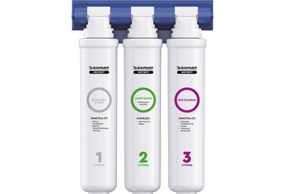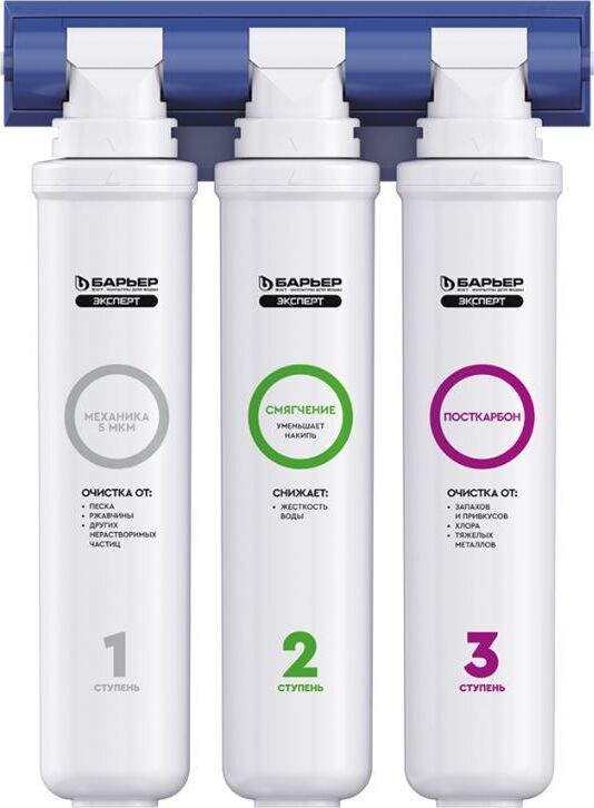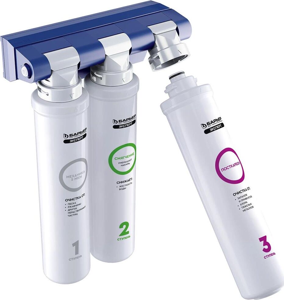 Фильтр Expert Hard, стандартная очистка городской водопроводной воды и снижение жесткости, три ступени очистки, 1-я ступень Механика, 2-я ступень Смягчение, 3-я ступень Посткарбон, защита от крупных механических частиц, активного хлора, ионов тяжелых и токсических металлов, очистка воды от ржавчины, неприятного запаха и привкуса воды, технология byPass увеличивает ресурс и помогает избегать гиперумягчения воды, скорость фильтрации 2 л в минуту, срок службы фильтроэлементов до 1 года, замена картриджей в 1 касание, технология Smart Lock фиксация картриджей гарантия от протечек, температура очищаемой воды +5...+35 градусов, максимальное рабочее давление 7 атм, ресурс фильтроэлементов 10 000 литров, отдельный кран для чистой воды в комплекте.