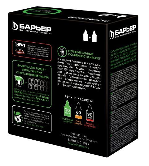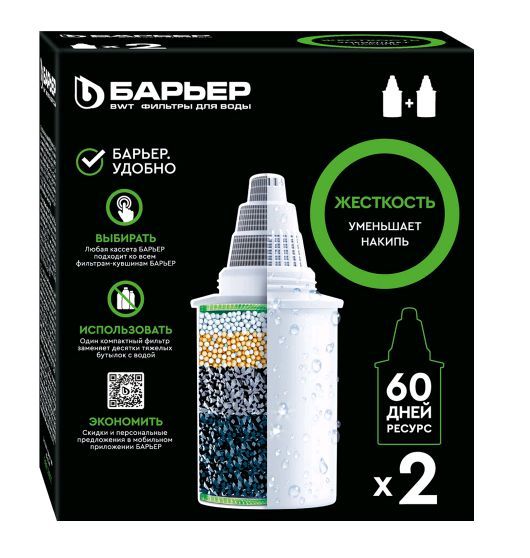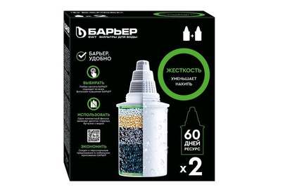 Комплект из 2 сменных кассет «Жесткость» от компании «Барьер» будет достаточно, чтобы поддерживать высокое качество очистки и смягчения воды в течение 60 дней. Смесь серебра, традиционного и кокосового активированного угля устраняет не только загрязнения, но и неприятные запахи и привкусы. А гранулированная ионообменная смола эффективно очищает воду от ионов токсичных металлов. Состав: пластик Хранить не более 1095 дней при температуре от 0 до + 16 С.