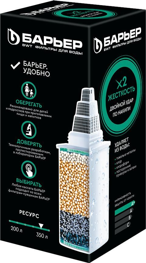 Ресурс, л 350 Проблема воды Жесткая вода Тип очищаемой воды Питьевая водопроводная Срок хранения, мес 36 Размеры упаковки, ДхШхВ 64x64x146мм Срок хранения, мес 36 Вес, кг 0.143 Кассета "Жесткость Х2" с инновационной формулой разработана специально для очистки воды с повышенной жесткостью.Специальная очистка очень жесткой воды. Позволяет забыть о накипи в чайнике. Удаляет тяжелые металлы, железо, хлор и его соединения, посторонние привкусы и запахи. Уменьшает накипь за счет удаления солей жесткости, выпадающих в осадок. Ресурс зависит от качества исходной воды, но составляет не более 350 литров