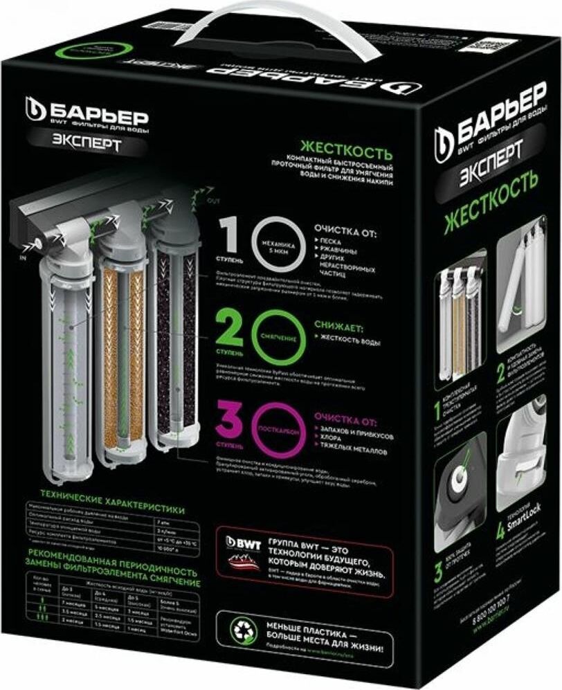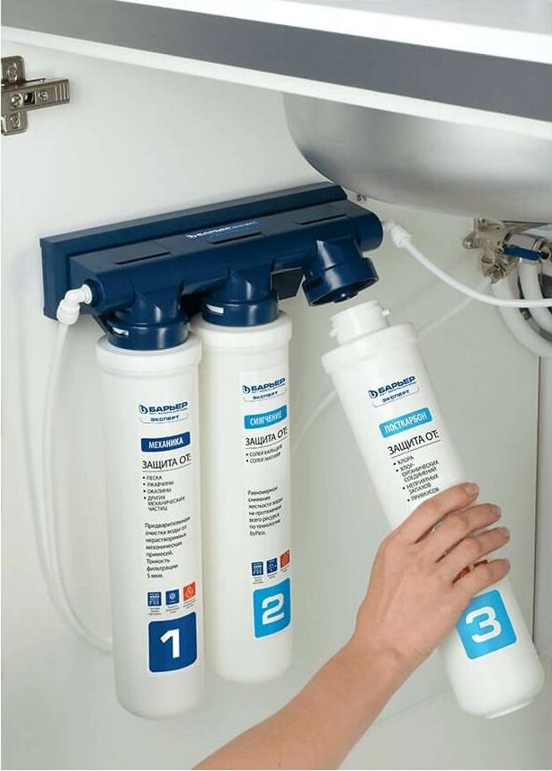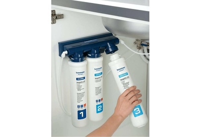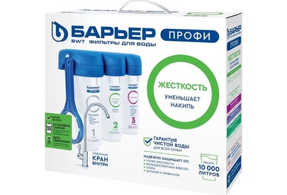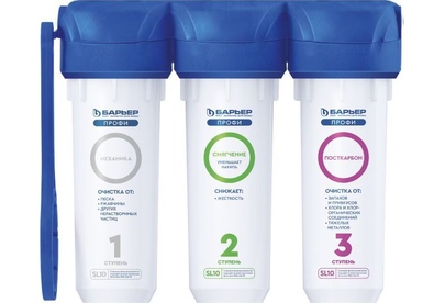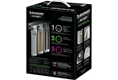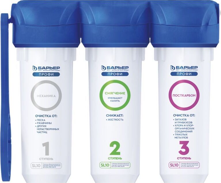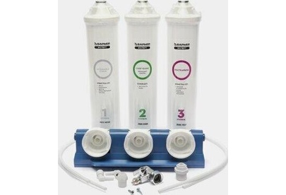 Трёхступенчатая очистка водопроводной воды с технологией byPass, позволяющей увеличить ресурс и избежать побочного эффекта гипперумягчения воды. мах.давление 7 атм, расход 2л/мин, ресурс - 10.000 л.