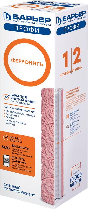 БАРЬЕР Р141Р02 Фильтроэлемент Профи ФерроНить 10 мкм SL10 (в упаковке)