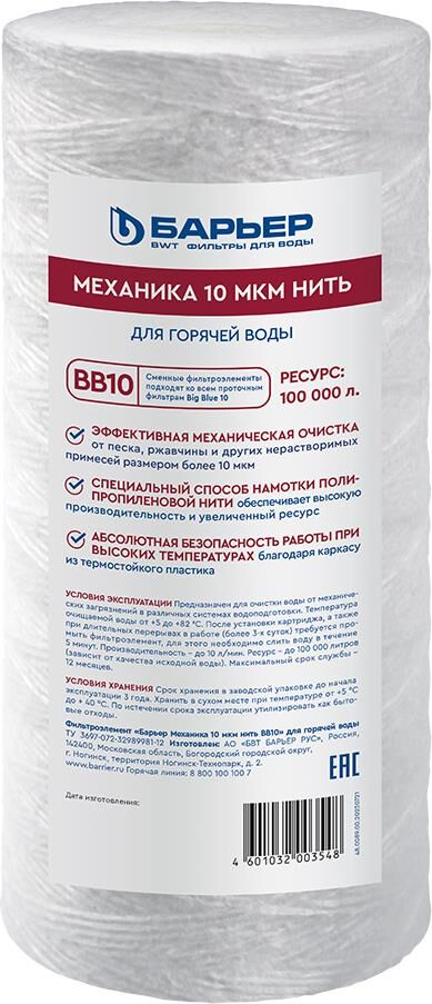 БАРЬЕР Р411Р11 Фильтроэлемент ВВ10 Механика 10 мкм нить для горячей воды
