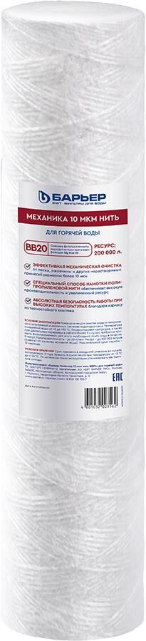 БАРЬЕР Р511Р11 Фильтроэлемент ВВ20 Механика 10 мкм нить для горячей воды