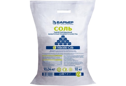 Соль таблетированная БАРЬЕР применятся в процессе подготовки солевого раствора в солевых баках в системах умягчения воды, а также в системах отопления и бытовых водонагревательных приборах, в целях защиты нагревательных элементов от известковых отложений. В любых системах, требующих регенерации ионнообменной смолы раствором пищевой соли. Содержание хлорида натрия 99,8%. Соль таблетированная БАРЬЕР изготавливается по ТУ10.84.30-001-43545785-2022 и представляет собой спрессованную пищевую выварочную соль (NaCl) сорта Экстра, соответствующую требованиям ГОСТ Р 51574-2018 без добавления йода и антислеживающей добавки. • Таблетированную соль упаковывают в полипропиленовые мешки массой нетто 10 кг • Срок хранения таблетированной соли — 2 года • Размер таблетки: диаметр 25 ±2 мм, высота 18±2 мм; • Масса таблетки 15±3 г Условия хранения: соль хранят в сухом помещении при относительной влажности воздуха не более 75%. После вскрытия мешка допускается хранение в плотно закрытых контейнерах.