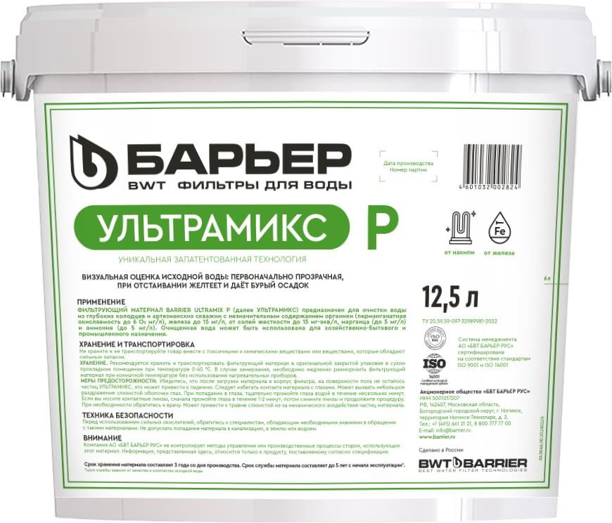 БАРЬЕР С207303 ULTRAMIX Р, 12,5 л Применяется для очистки воды с повышенным содержанием железа, жест