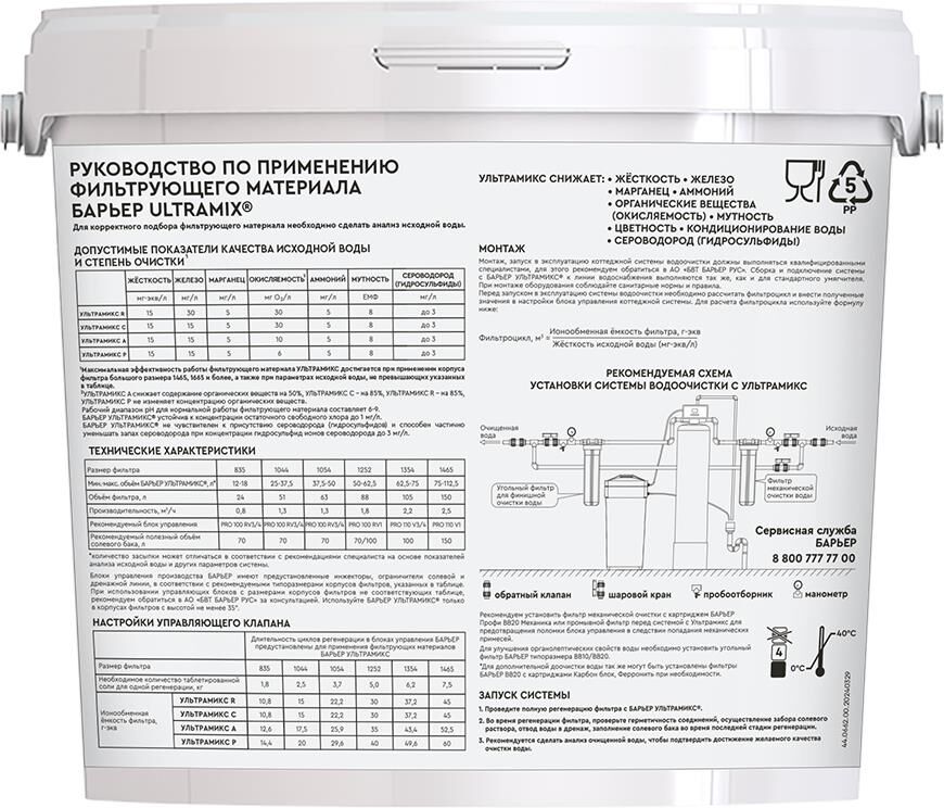 БАРЬЕР С207303 ULTRAMIX Р, 12,5 л Применяется для очистки воды с повышенным содержанием железа, жест