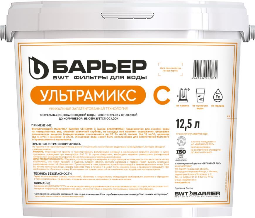 БАРЬЕР С208303 ULTRAMIX С, 12,5 л Применяется для очистки воды с повышенным содержанием железа, жест