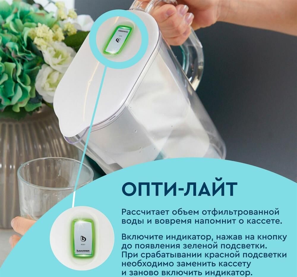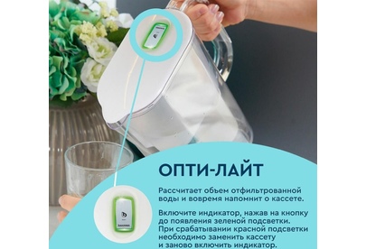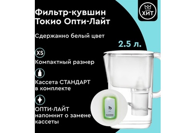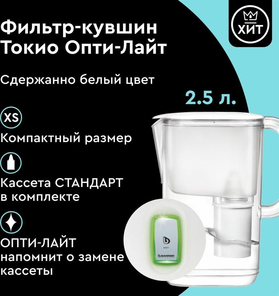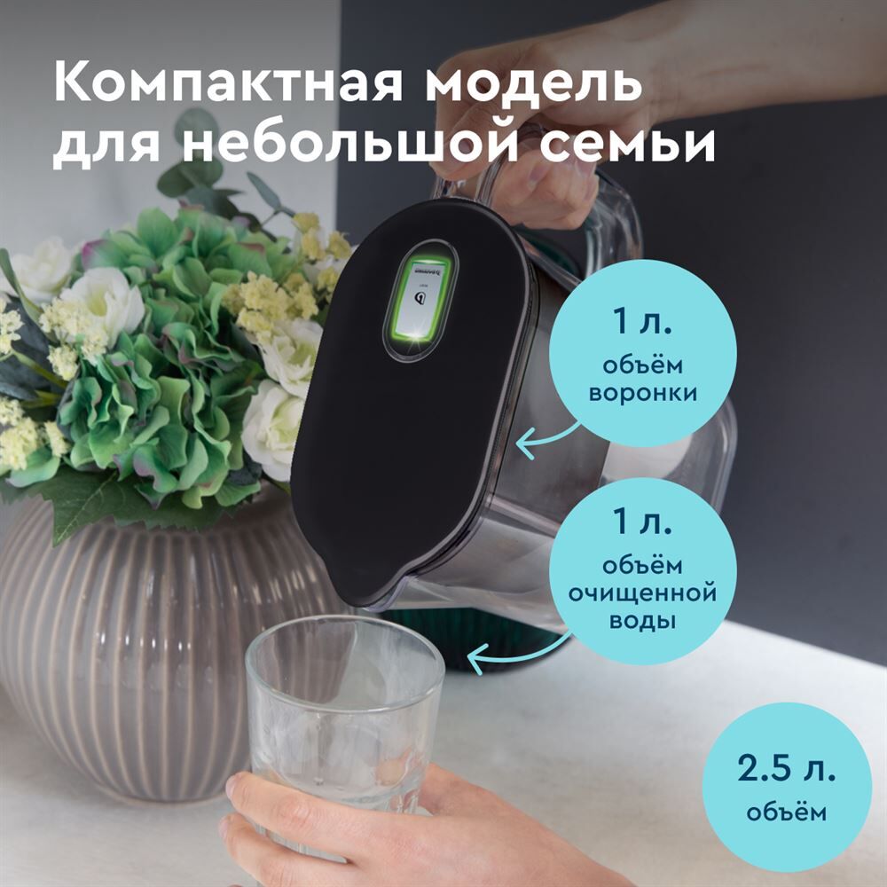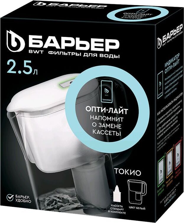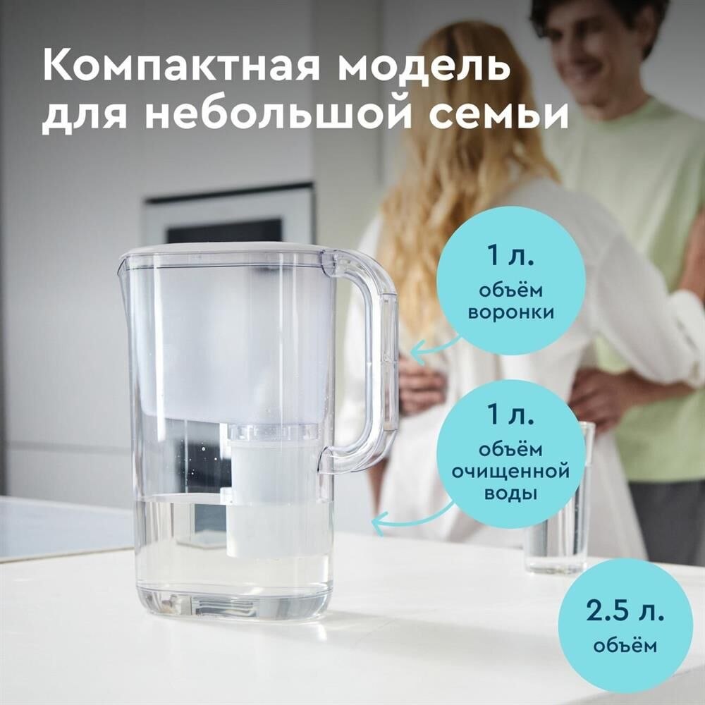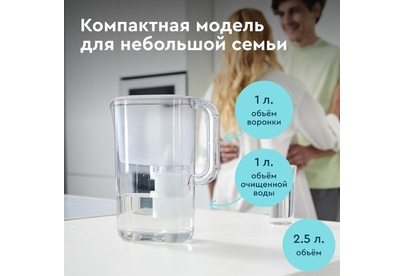 Тип кассеты в комплекте Стандарт Объём кувшина 2,5 л Размеры упаковки 220x90x260мм Возможность размещения в дверце холодильника да Объём очищенной воды 1 л Наличие и тип индикатора ресурса Электронный Объём фильтра-кувшина маленький Цвет белый Объём воронки 1 л