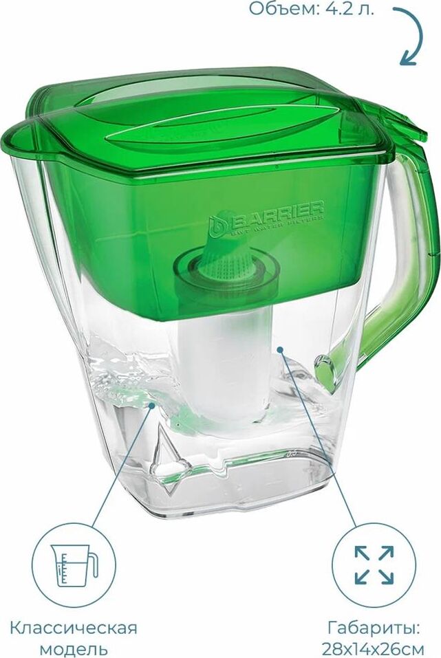 Тип кассеты в комплекте Жесткость Объем кувшина, л 4.2 Объем очищенной воды, л 2 Объем воронки, л 1.7 Возможность размещения в дверце холодильника Нет Индикатор ресурса Нет индикатора Ресурс, л 350 Тип очищаемой воды Питьевая водопроводная Цвет Зеленый Размеры упаковки, ДхШхВ 288x149x268мм